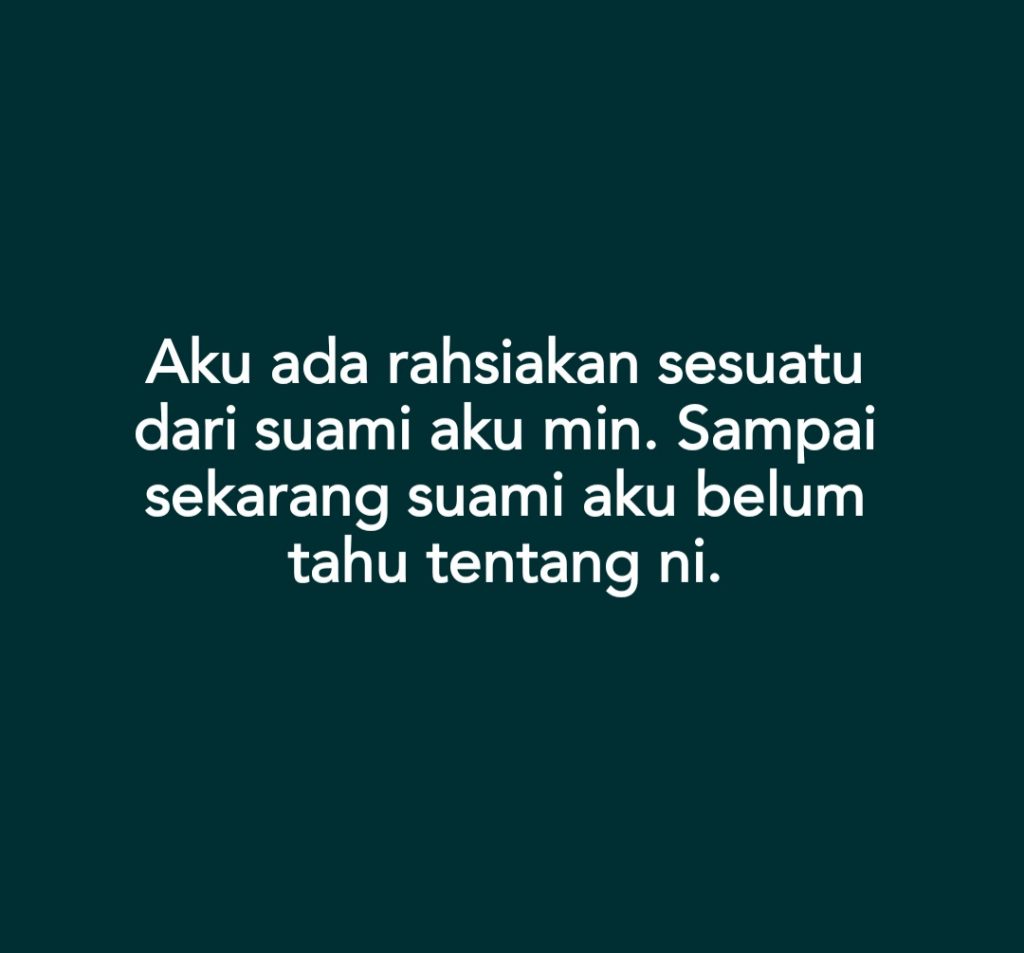 Asalamualaikum aku seorang isteri dah pun berkahwin 3 tahun. Ada anak sorang. Masalah aku besar min. Very a big problem. Aku ada rahsiakan sesuatu dari suami aku min.